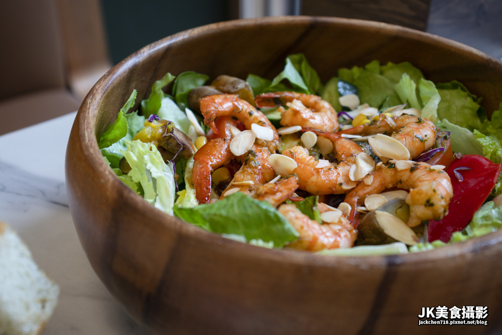 【台南 永康】木盆永康門市 | 超乎想像的新鮮沙拉,滿滿一個木盆讓人驚豔,鮮蝦口感新鮮好吃,煙燻鮭魚風味十足讓人滿意。