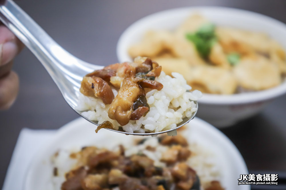 滷肉飯的米粒是屬於比較軟的顆粒,而這裡的滷肉飯也是夾皮帶肉的,是我比較喜歡的那種滷肉飯,滷汁頗鹹,拌入飯中味道不錯,很傳統的口味。
