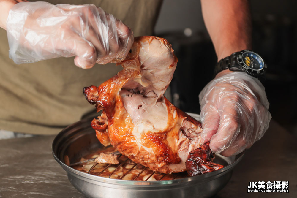 線上預訂的烤雞,烤的技術非常不錯,外皮Q彈肉質細緻,可以現場自取或者店加外送至府。