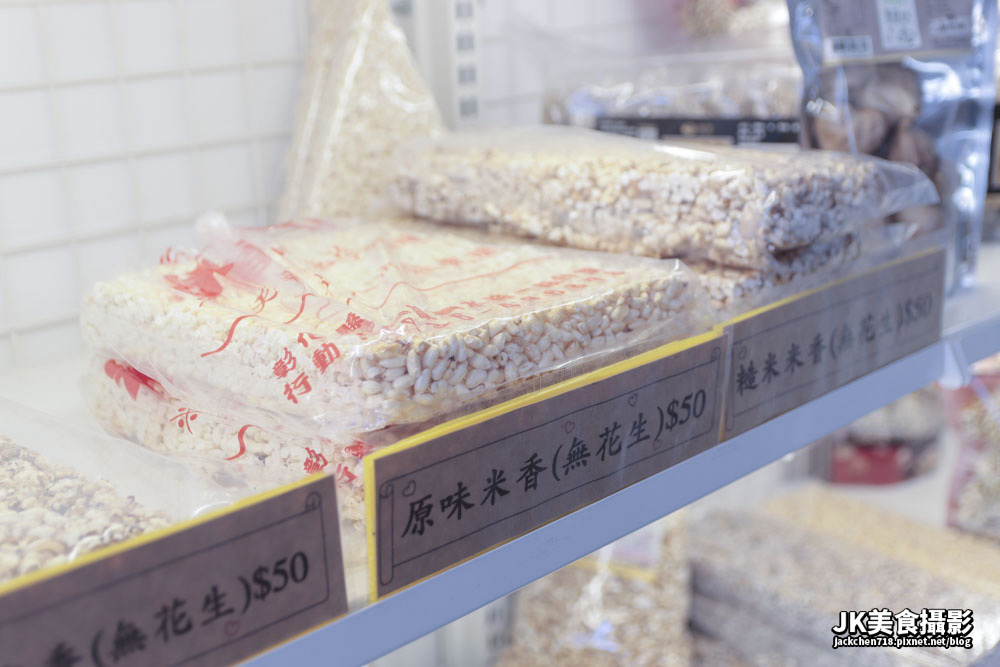 架上陳列了各式各樣的米香製品,還有很少見到的麵茶粉,改天有機會想去試試看。