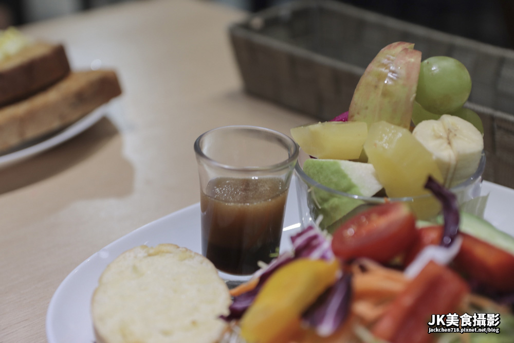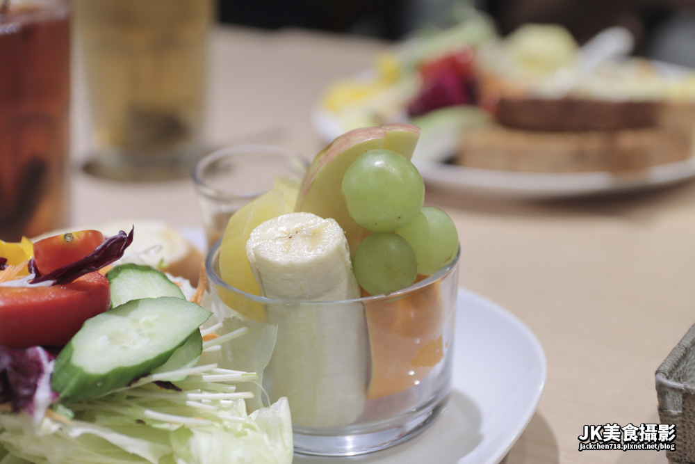 而杯裝的水果也讓人滿驚豔的,有著香蕉、葡萄、蘋果、芭樂,讓人吃了頗滿意,而且水果新鮮多汁。