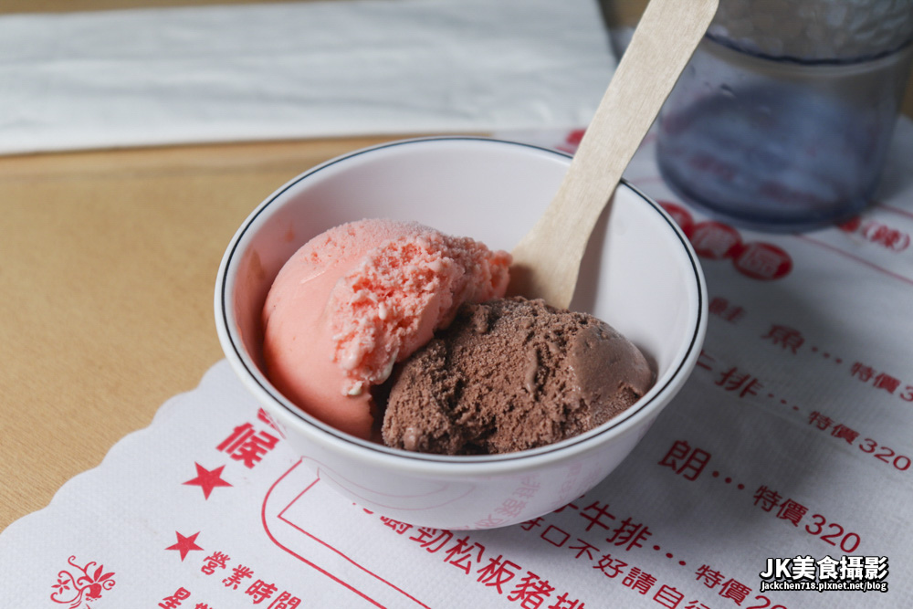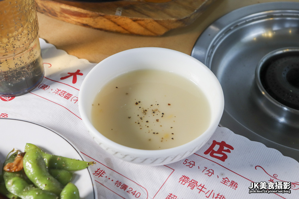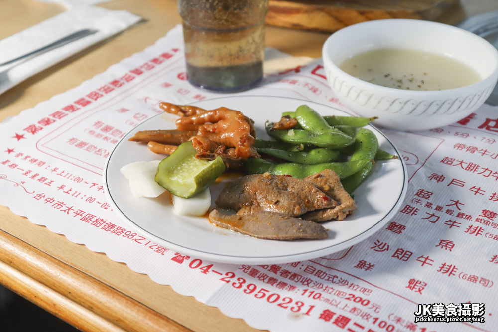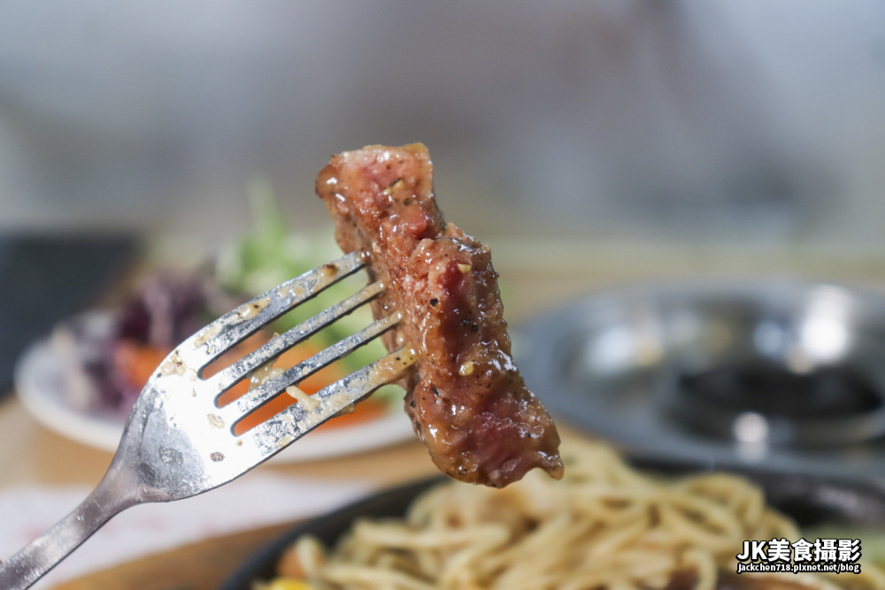 店家推薦七分熟,不過吃起來有點像五分熟,肉質頗軟嫩,可以吃到牛肉的味道,不過口感是夜市牛排的口感,比較沒有肌理感。