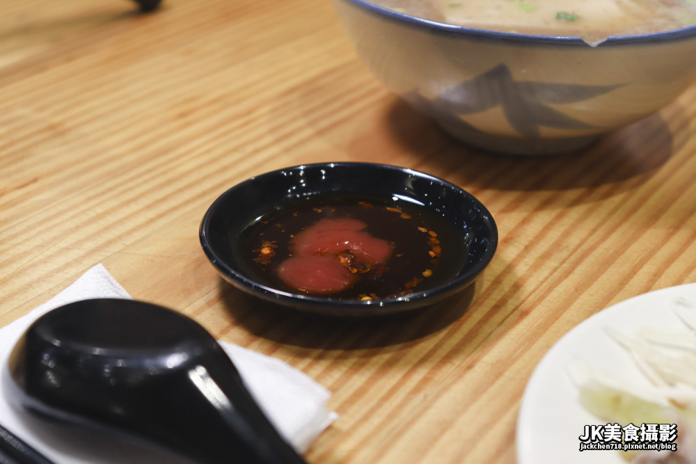 使用了店家建議的調醬組合,醋加甜辣醬加辣油,入口甘甜尾韻回辣,整體味道非常好,搭配隔間肉更是絕配。