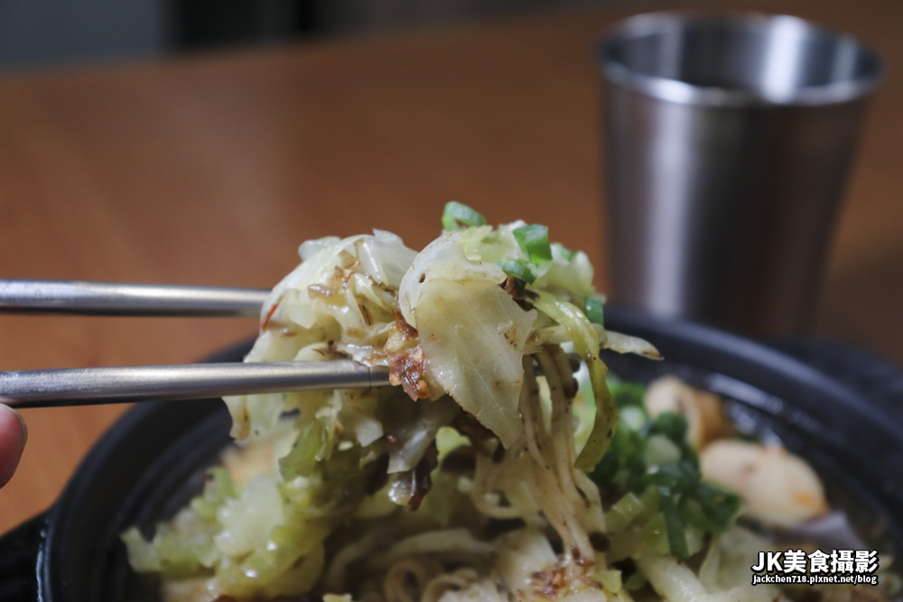上面的榨菜和高麗菜,提供了青脆的口感,味道在麻辣湯汁的加持下,非常豐富香辣。