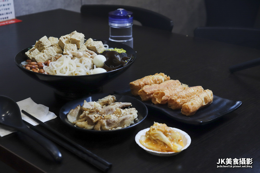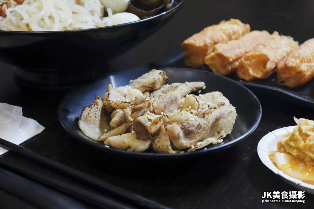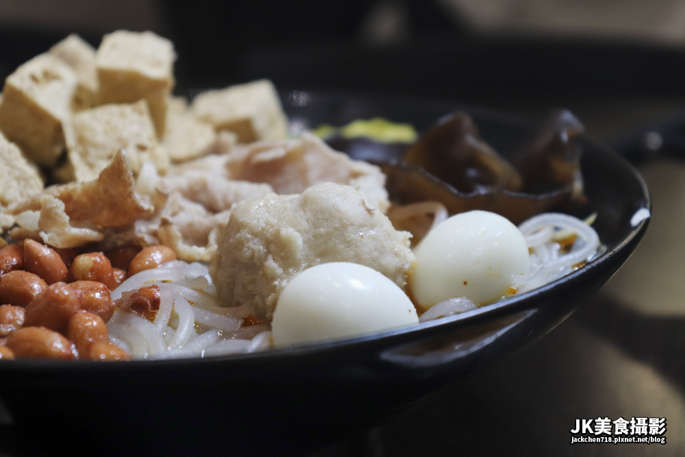 另外還有一個貢丸和兩顆鵪鶉蛋,讓整個味道口豐富,另外筍干與黑木耳也提供了口感與風味,整體呈現酸辣帶香,爽脆Q彈而帶酸,搭配起來讓人欲罷不能。