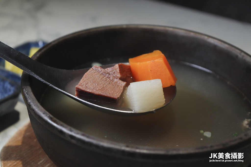 是非常好喝的牛肉燉湯,裡面的牛肉塊切的方正且十分的大塊,肉質細膩入口即化,咀嚼後有十足香氣,肉汁與湯汁再口中流躺,讓人忍不住一直喝下去。
