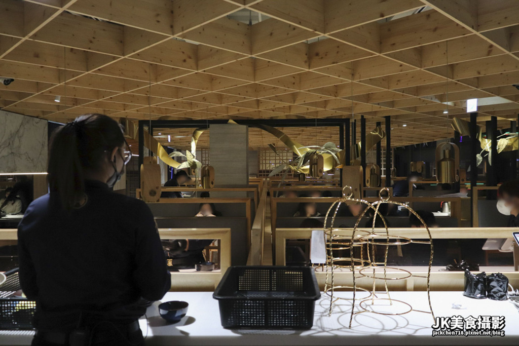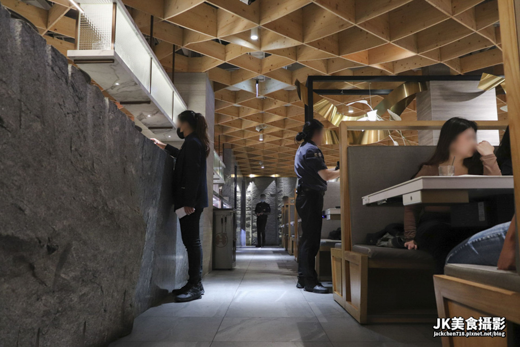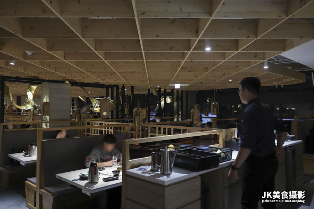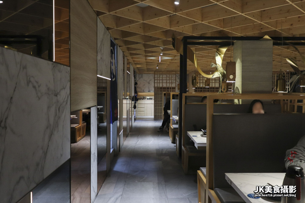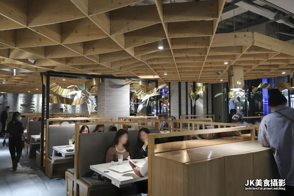 這次訂位是安排在二樓,不過一樓和二樓的天花板與隔間都使用的木質方格設計,設計感統一,整個望過去非常舒適,而座位沙發柔軟舒適,桌面是大理石紋路的桌面,讓人覺得於此用餐十分愉快。