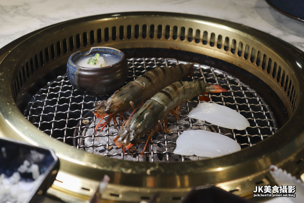 海鮮部分均請店員協助代烤,而花枝片的部分由於上面有紋甲切格,烤起來肉質滑順軟有口感,帶有炙燒厚的香氣。