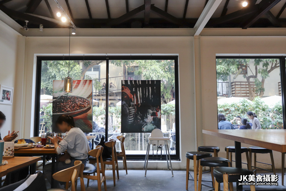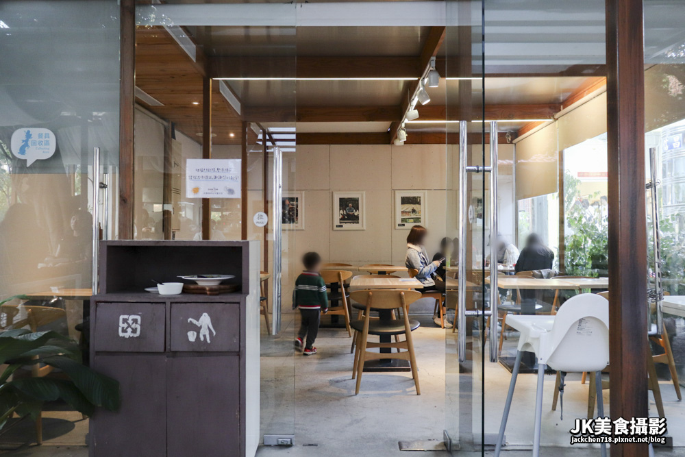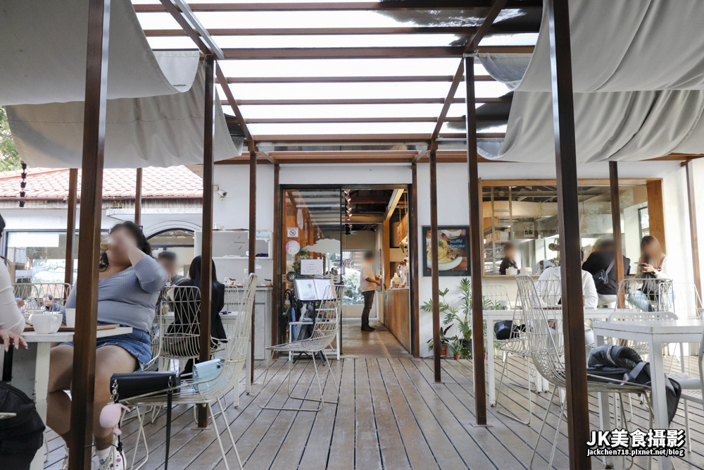 走道中間左方銜接著一個用餐區,有著數張桌子,座位頗多看起來也很舒服,總之是個非常適合用餐與喝午後咖啡的地方。