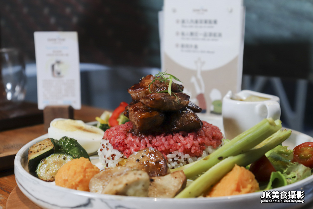紅藜飯的口感很特別,屬於非常Q彈好吃的米飯,有一點點像日式飯糰的感覺,咀嚼後香氣鮮明,層次感也強,很好吃。