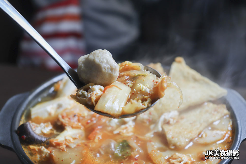 泡菜鍋裡面很懂不同的料,魚板口感非常不錯,年糕是偏軟的年糕。