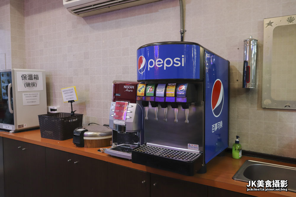 另外還有提供冰淇淋,也是可以無限享用,這裡的冰淇淋比較鬆,不過味道鮮明,整體不錯。飲料部分有冷熱飲,熱的部分是咖啡,冷飲則是常見的汽水機台。