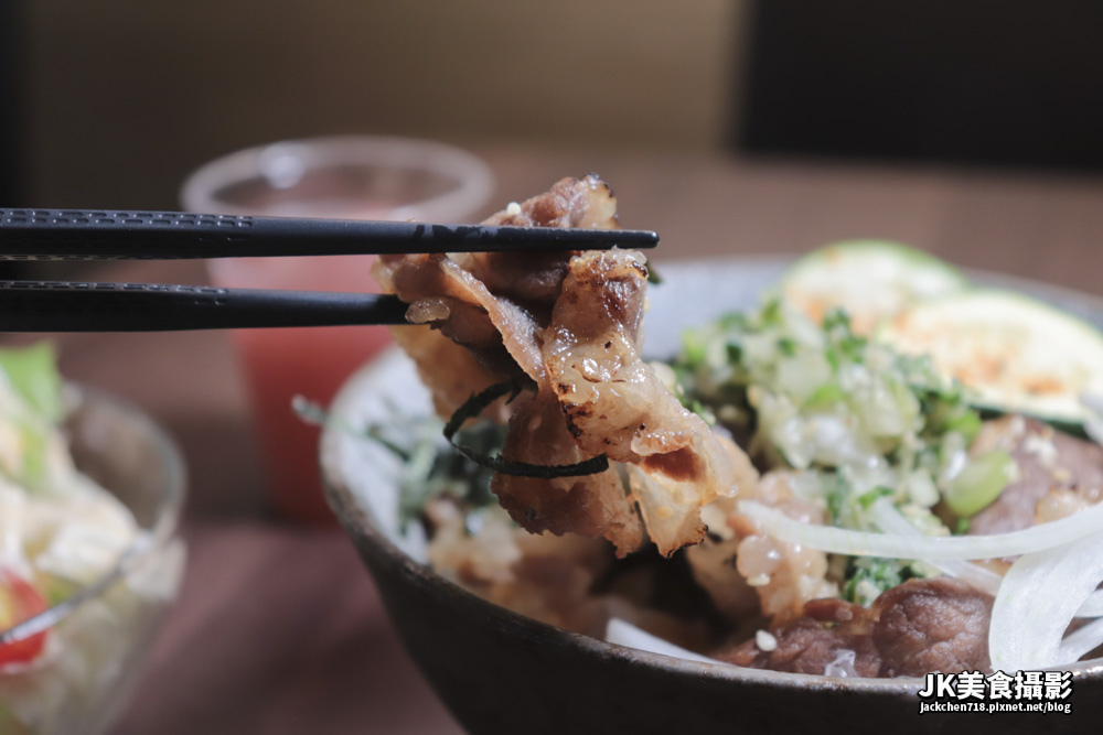 飯上的洋蔥十分新鮮,入口辛辣好吃,增添不少風味,蔥鹽的鹹味與蔥香味散發,屬於比較重口味的佐料,搭配牛肉味道更強烈好吃。