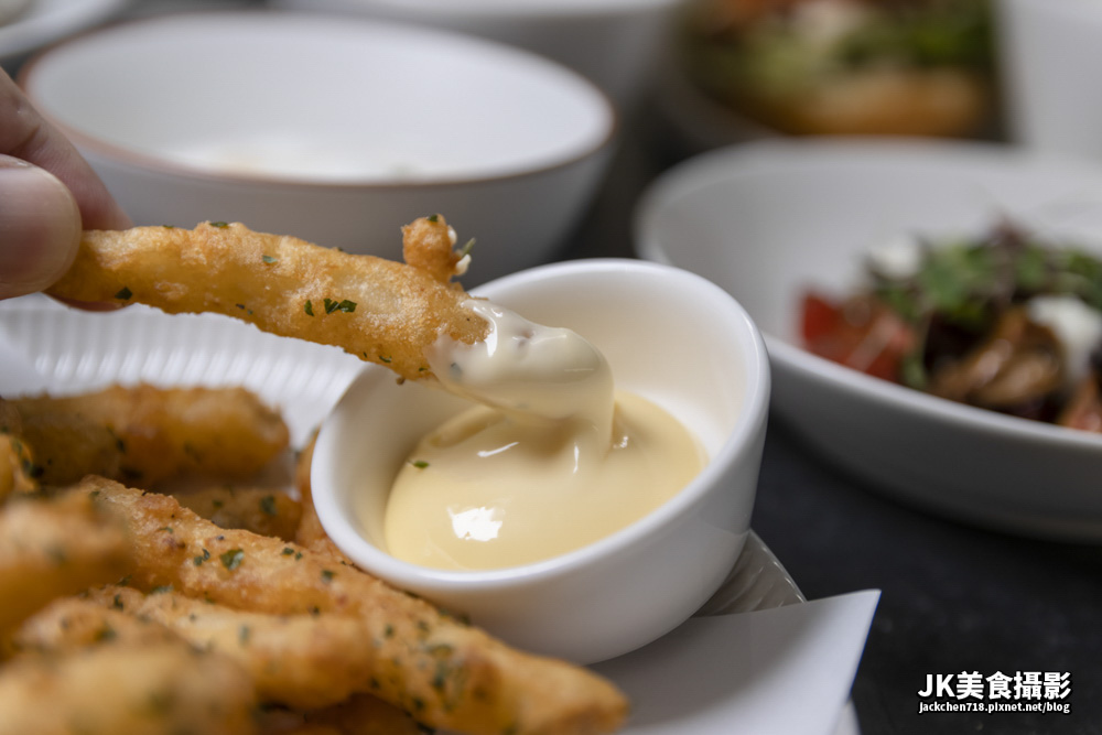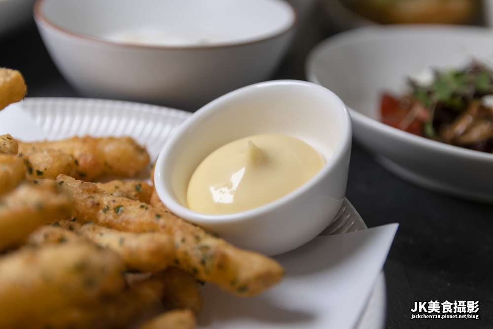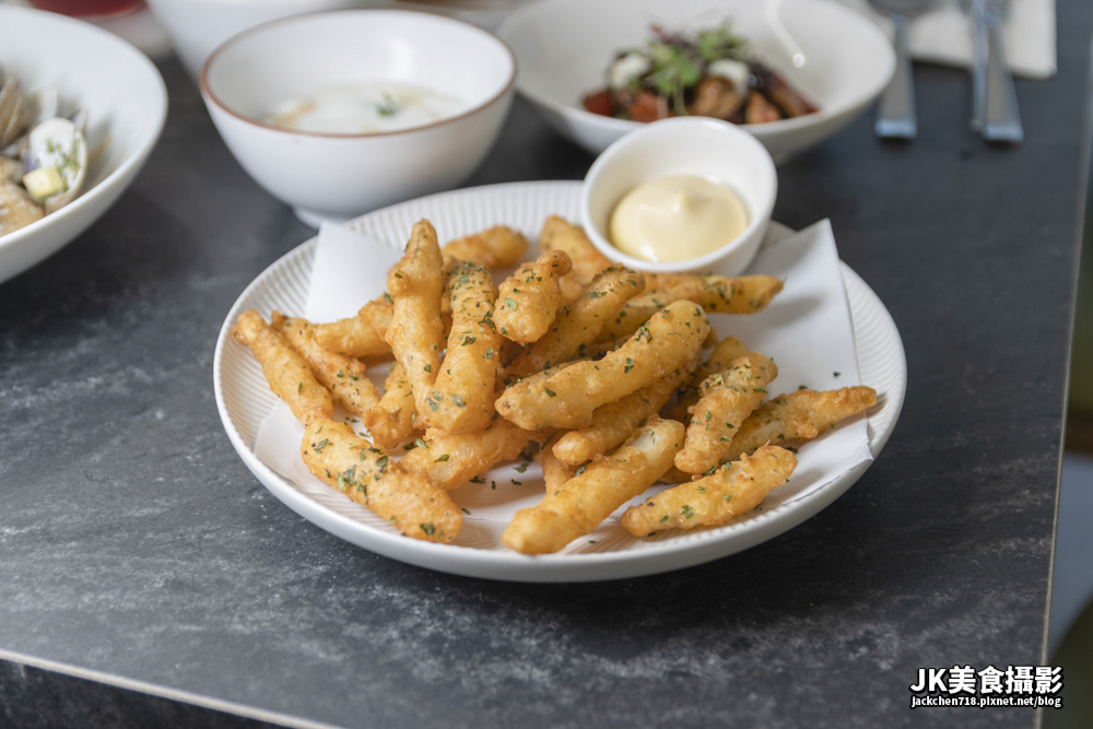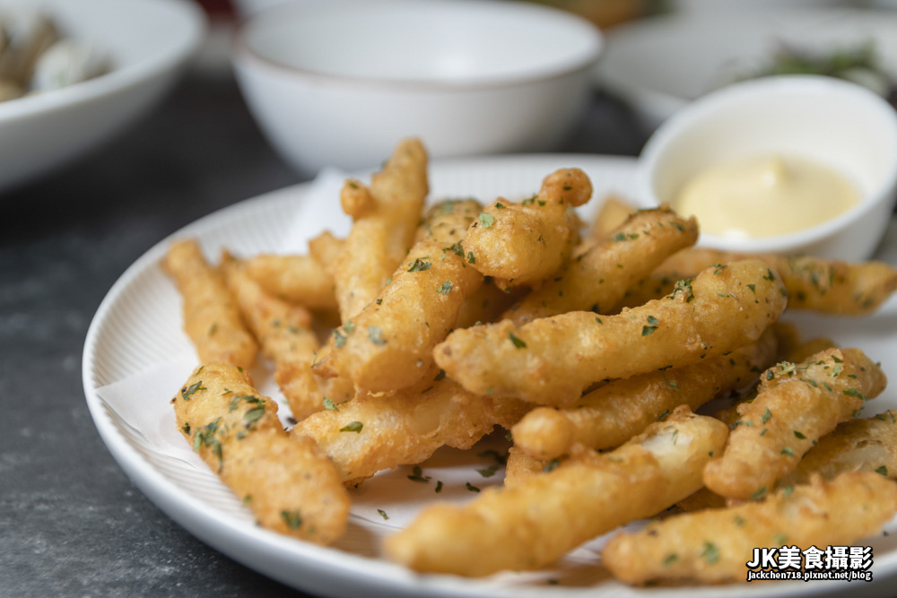 非常好吃的薯條,沒有一般馬鈴薯的粉感,放入口中,外皮口感十足,圓體的薯條散發鮮明櫻花蝦味道,灑上巴西利碎配美乃滋,整體風味絕倫。