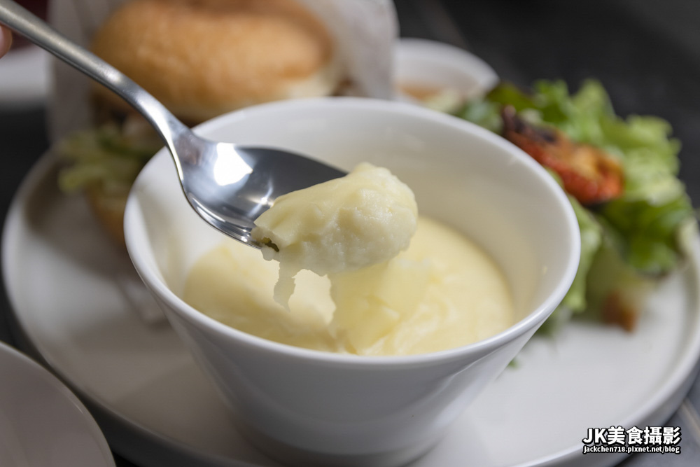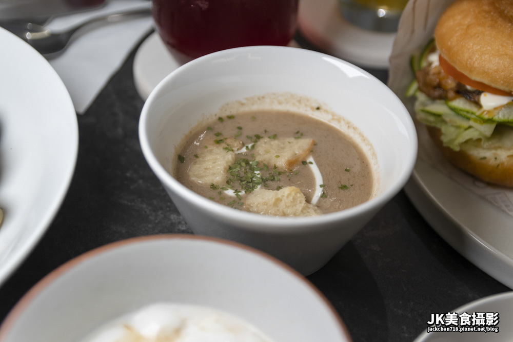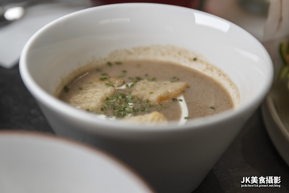 洋蔥與蘑菇的風味鮮明,整體風味濃郁確不厚實, 入口化開的美味,搭配麵包丁,整體味道更美味。