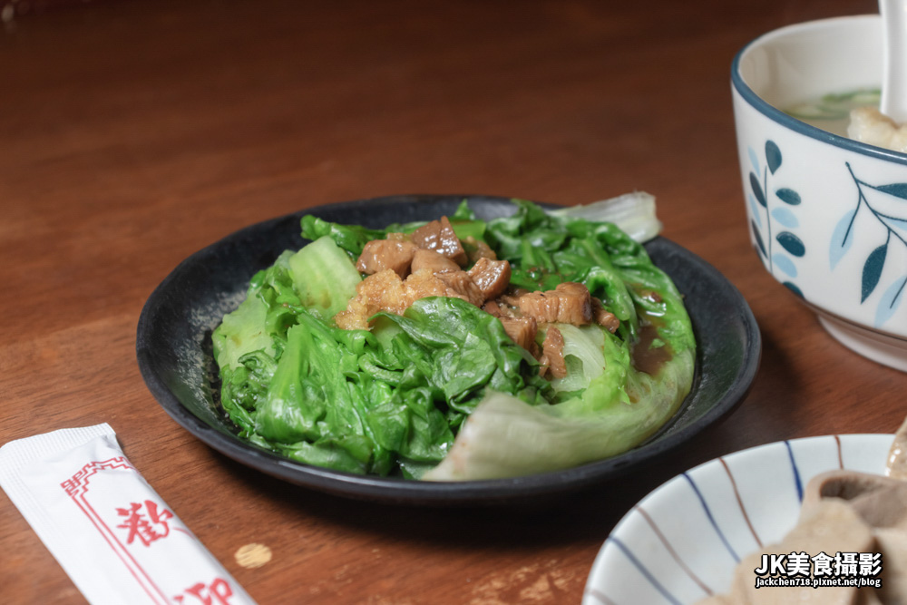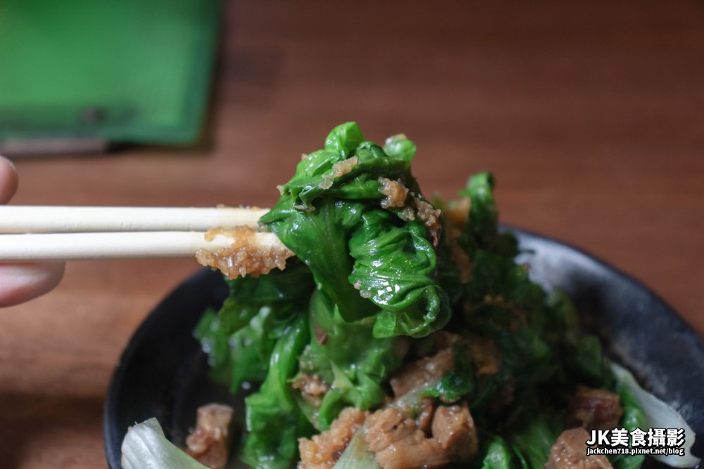 清燙過的A 菜,淋上帶有滷肉的大量滷汁,以及一大杓的蒜蓉,讓整體風味更強烈,讓人深深愛上這裡的滷汁,非常推薦。