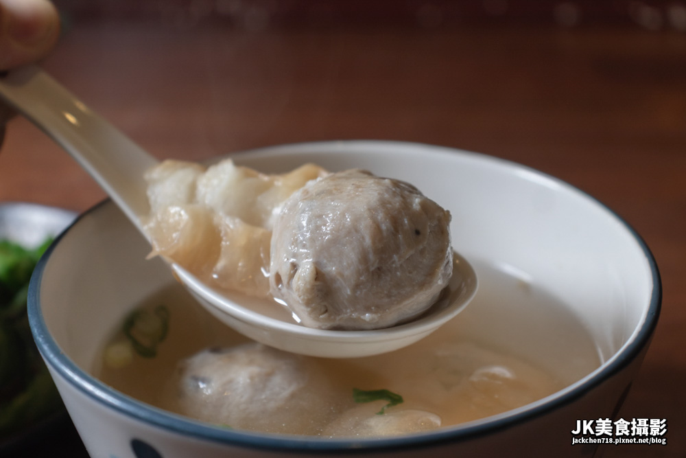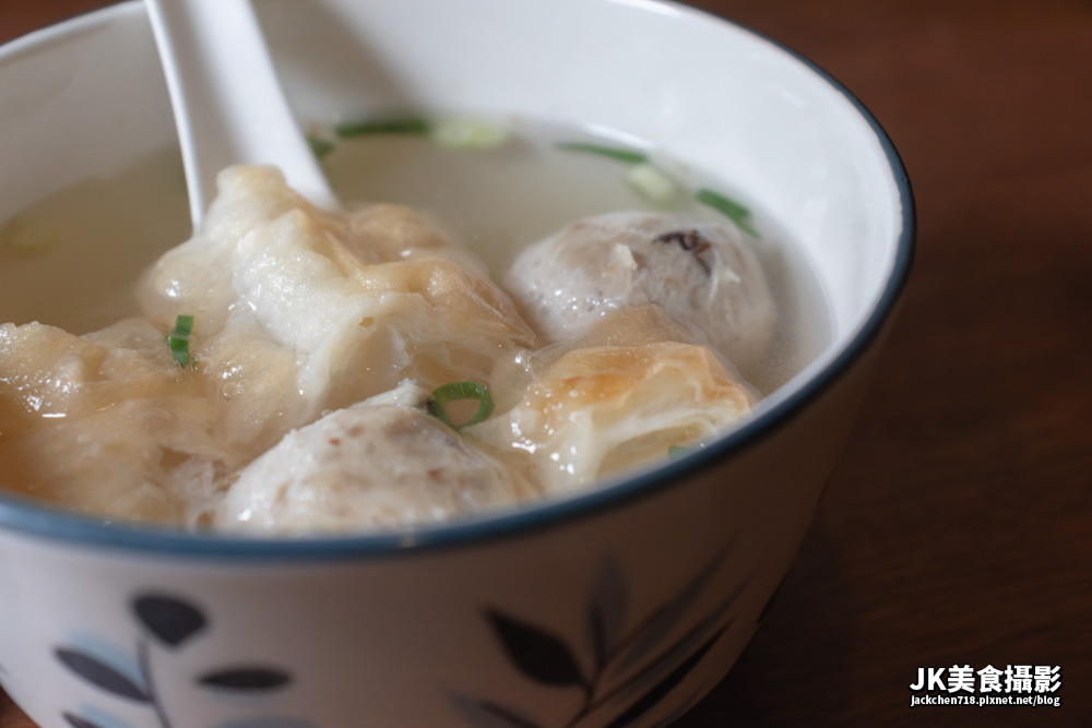 香菇貢丸帶有微微的鮮甜味,口感極佳,咀嚼後湯汁流出讓人滿足,而湯裡有三段油條,吸飽湯汁後油香順口,加入蔥花的湯頭也鹹香好喝,讓人喜愛。