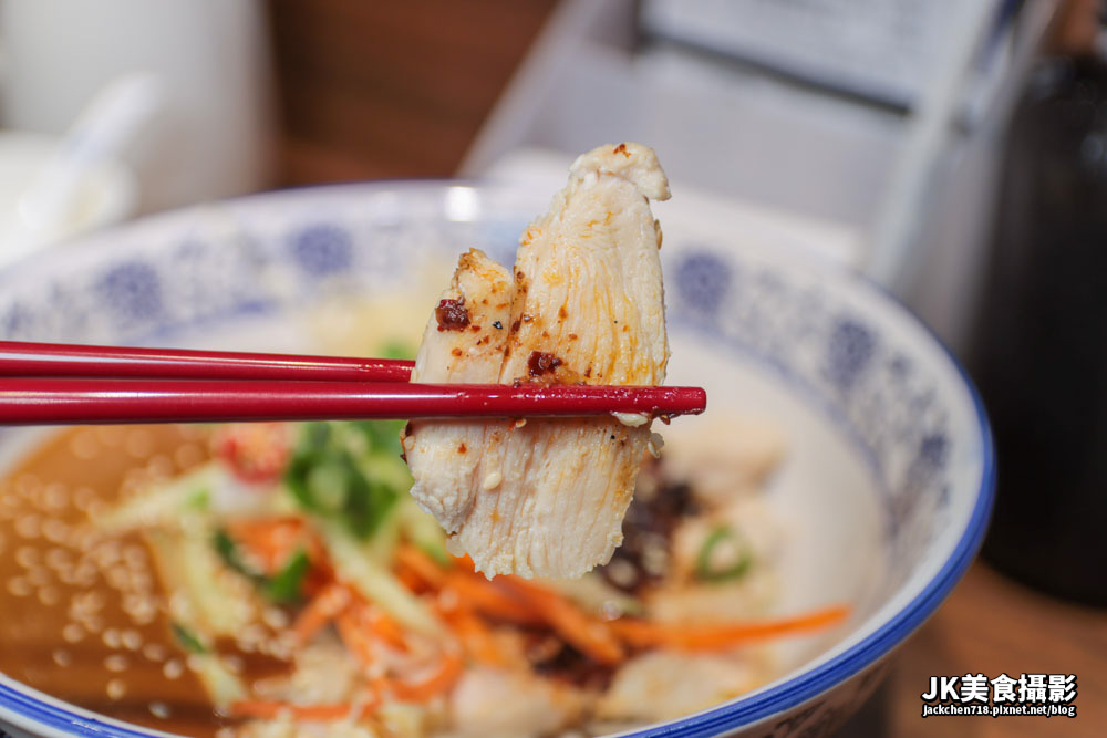 依照店家的建議,吃到一半之後再加入雞湯,椒麻的麵裡增加了一個雞湯的香味,讓整個味道更有層次,沒想到一碗麵也有不同的吃法,很特別。