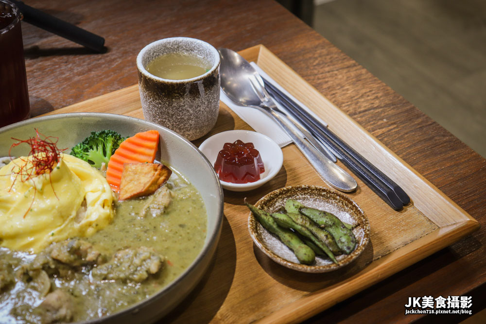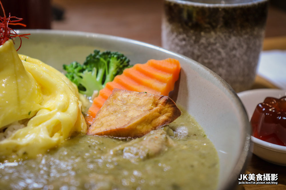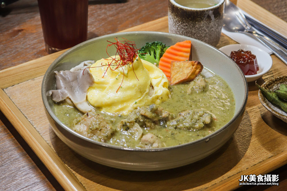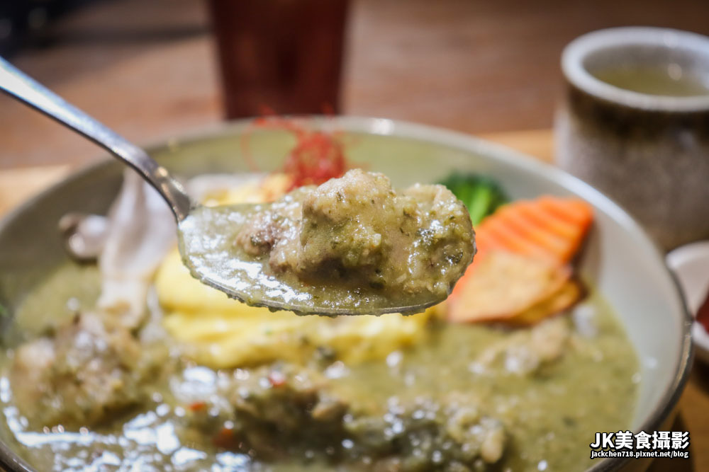 米飯飽滿搭配滑蛋,圓潤好吃,沾滿綠咖哩味道更是令人滿足,雞肉細嫩好吃,非常有口感,雞皮Q滑順口,沾滿綠咖哩,爽辣鹹香好吃。