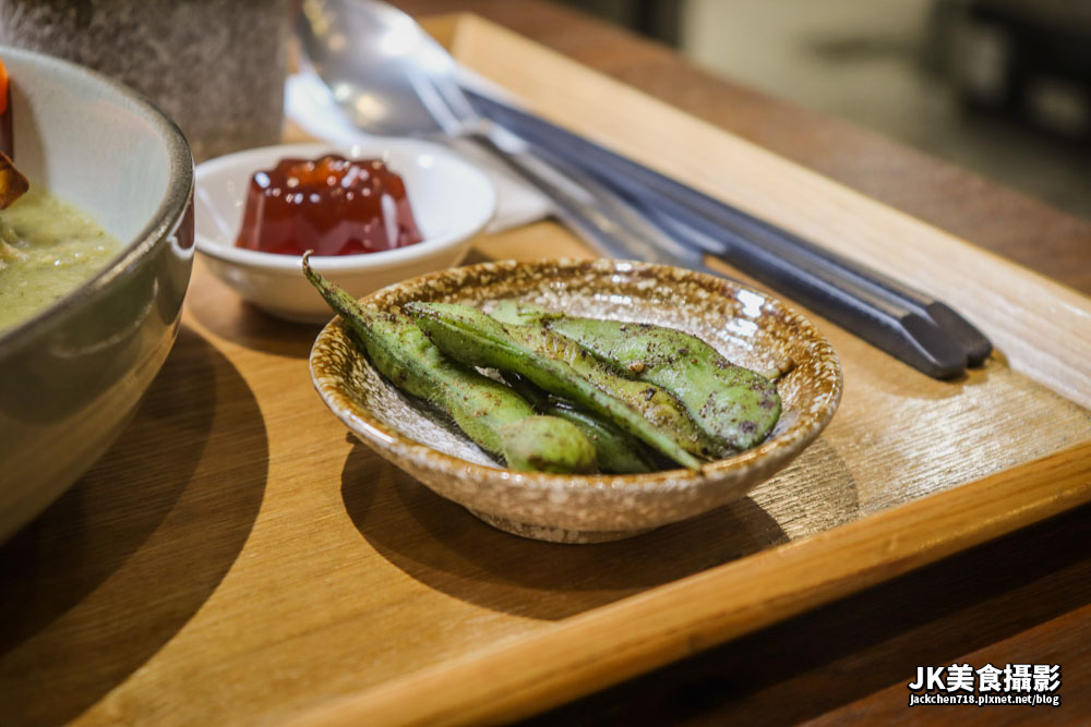小菜是毛豆,但是外層灑了一層好像是白胡椒粉的調味,整體味道香辣好吃。