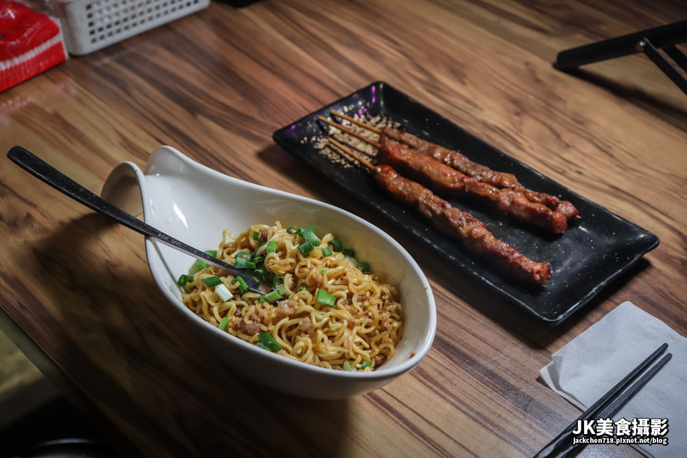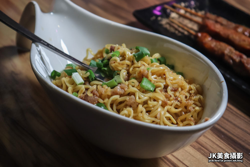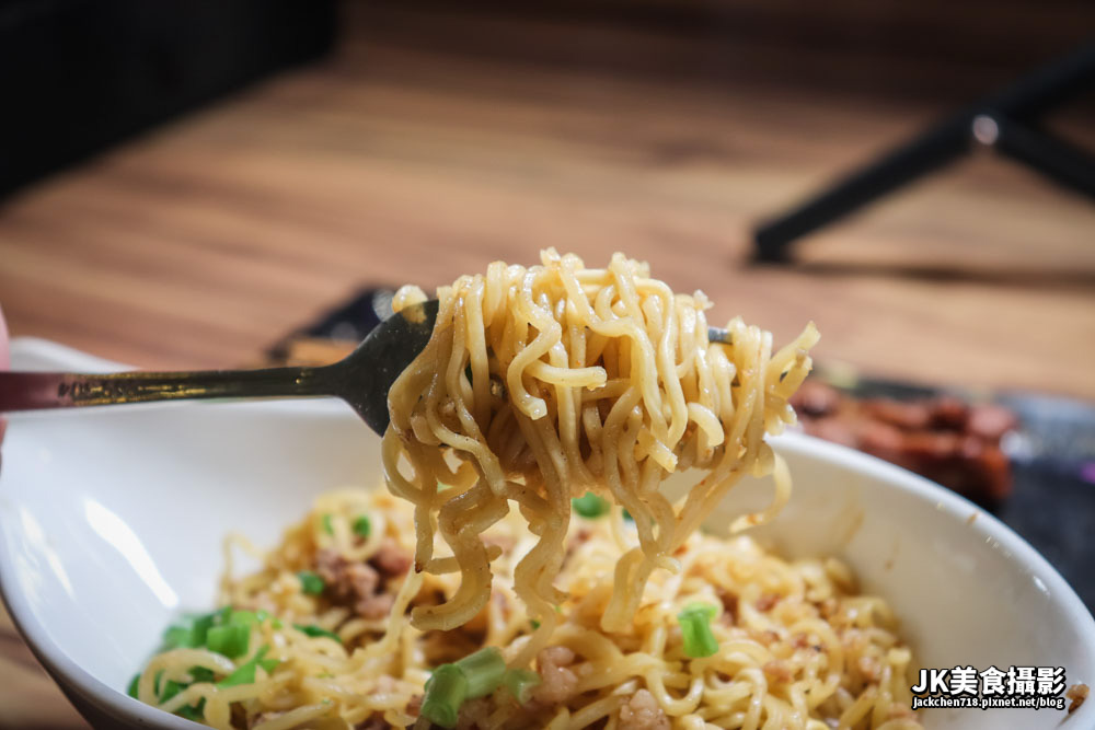 左入大量的豬肉末,搭配青蔥,與撈麵拌在一起,更增添層次感。