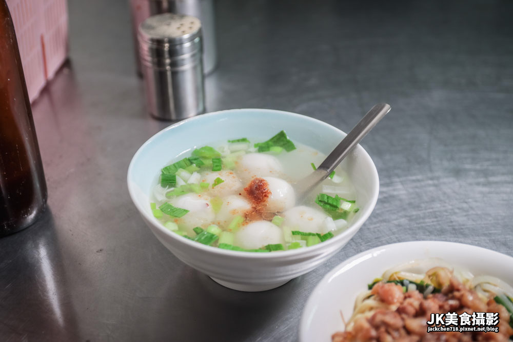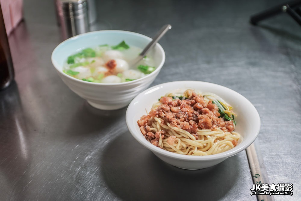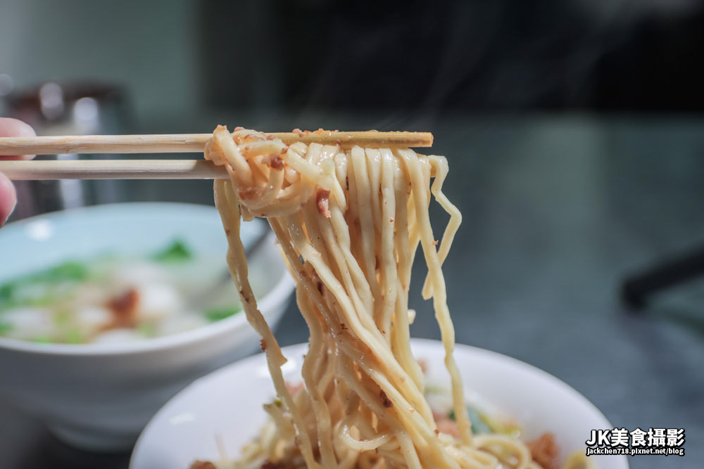 傳統的黃乾麵,口感紮實好吃,表面油滑而不膩,搭配豆芽菜與滷肉,味道不錯。