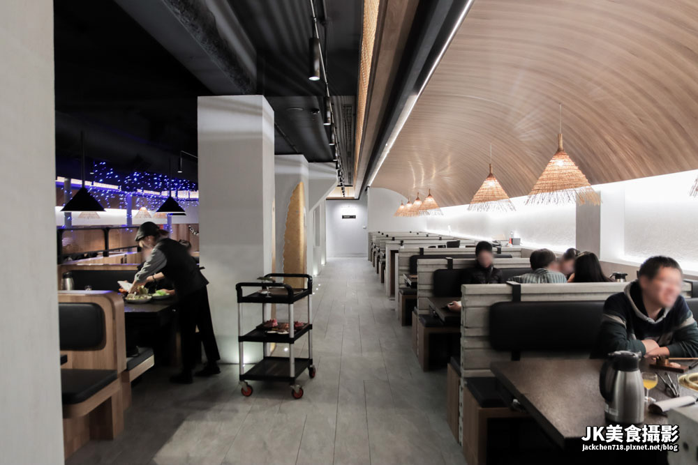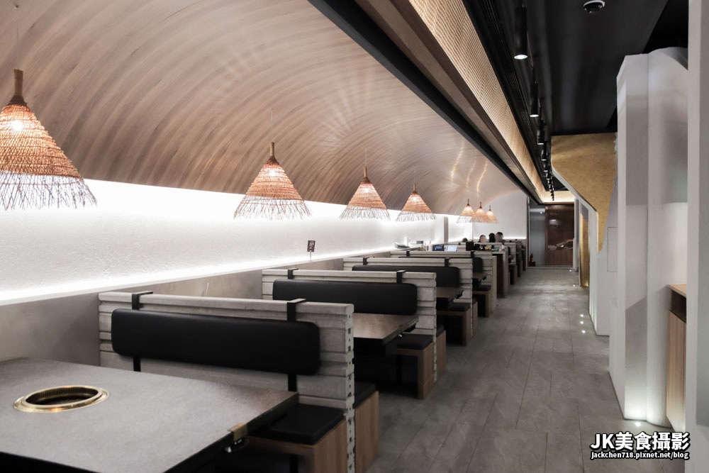 當然店內的燈光保有燒烤店一貫的燈光風格,視覺上非常素雅舒適,兼之大量木質色彩與石磚設計,有種獨特的風味與質感,視覺上也很舒服。