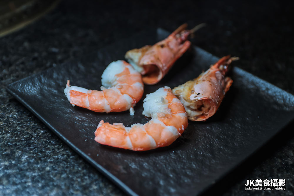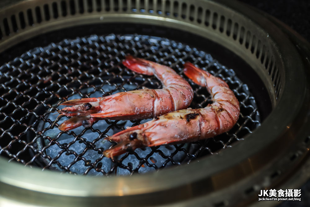 店員幫忙烤蝦子,整個烤完色澤非常好看,味道非常Q彈好吃,蝦味十分新鮮帶有海鮮清甜,讓人喜愛。