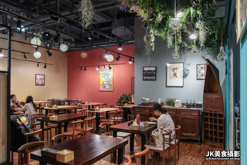 店內裝潢非常典雅好看,使用樓空的櫃子和大量的植披裝飾,牆面單一顏色素雅簡潔,讓人有很舒服視覺感,重點是非常寬闊且座位不少,感覺很適合小企業尾牙春酒聚餐,也非常適合三五好友相約吃飯。