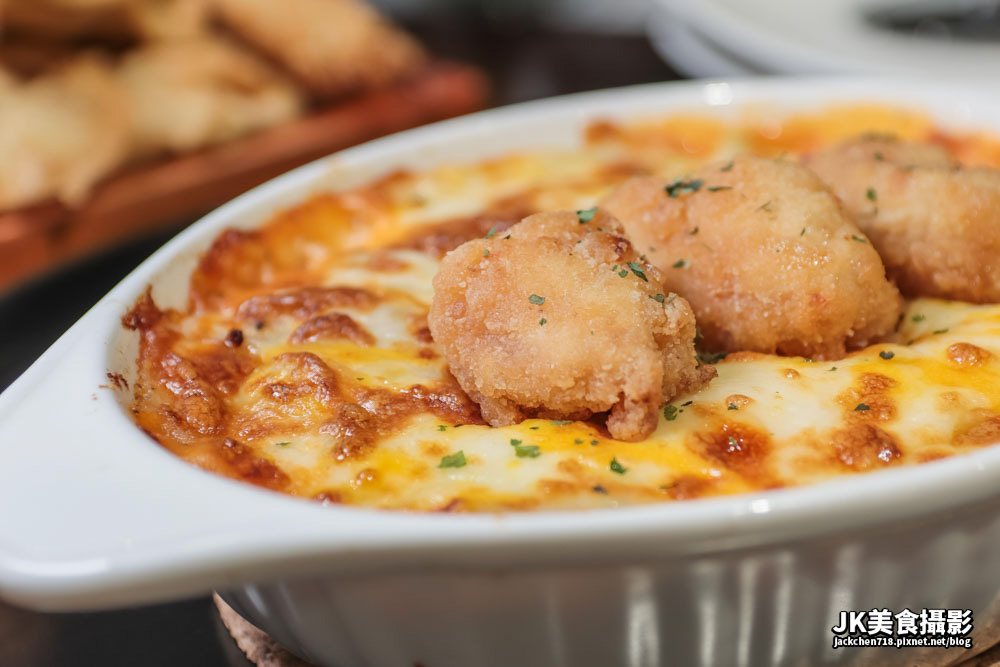 上層起司味道非常濃郁,燉飯是使用番茄醬燉煮,味道非常鮮明好吃,加入了大量蘑菇、玉米筍搭配香料,讓整體味道更豐富有層次,味道非常好吃。
