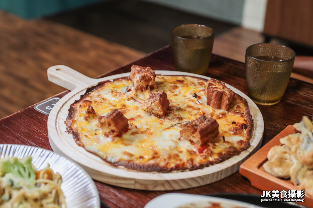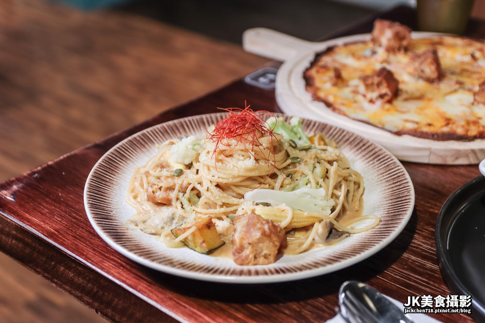 配料部分使用南瓜、蘑菇、花椰菜和油條,其中油條吸飽醬汁,味道非常鮮明好吃,整體搭配讓人驚艷,非常推薦。