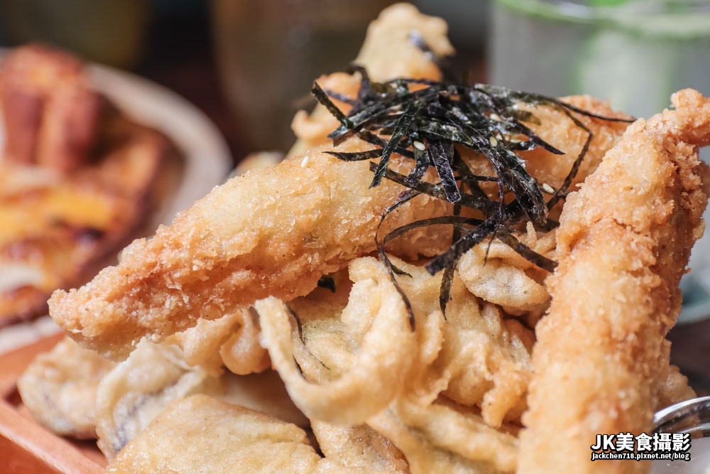 炸蝦底下是大量的天婦羅,有著南瓜、杏鮑菇、茄子、秀珍菇,炸得非常好吃,讓人滿足。