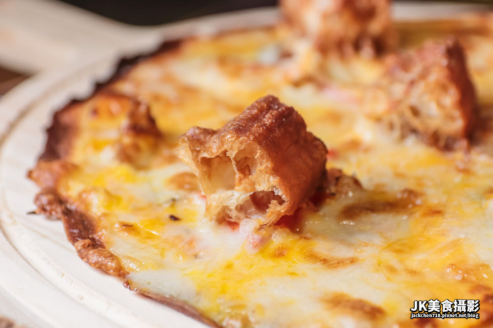 上面的油條非常酥脆好吃,一口咬下濃郁烤香散發配料加有泡菜,讓整體味道微微香辣好吃,搭配番茄的酸味,讓人覺得非常開胃。
