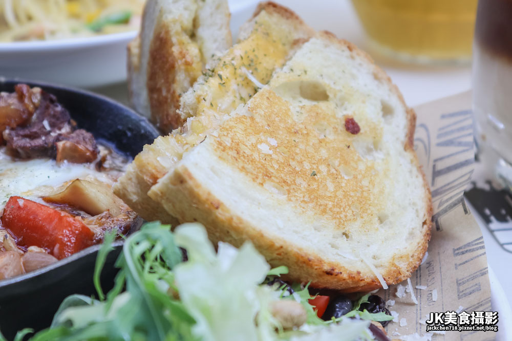 蒜香酸麵包口感非常好,外皮烤得微微焦脆,裡面夾著香料與起司,整體起司味鮮明,麵包體帶有獨特細緻風味,讓人越嚼越好吃的感覺。