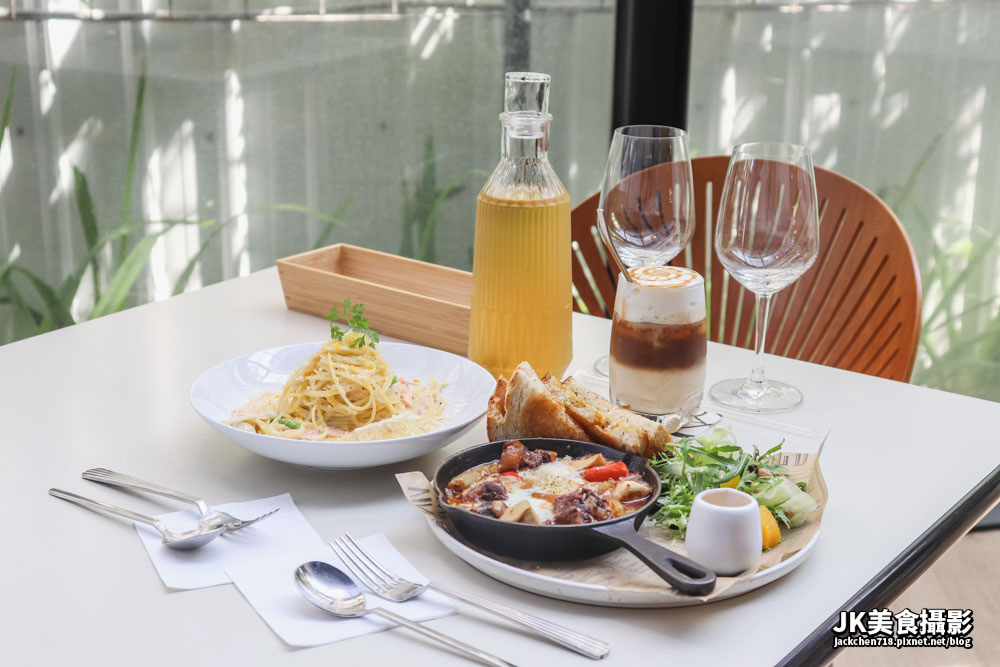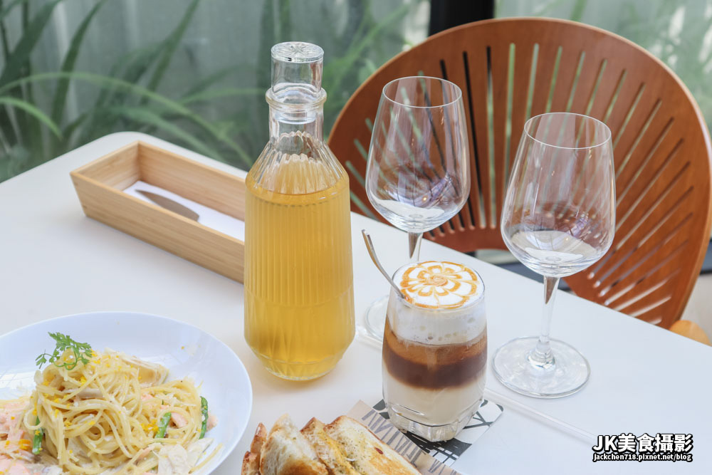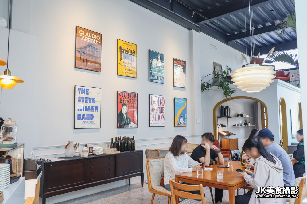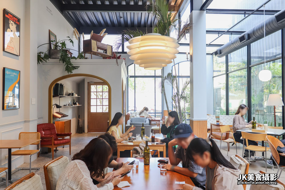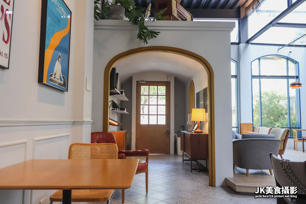 而店內的桌椅擺設也非常有設計感,整體以白色與木質交互裝飾,搭配落地窗的設計,給人一種來到歐洲的典雅感受。