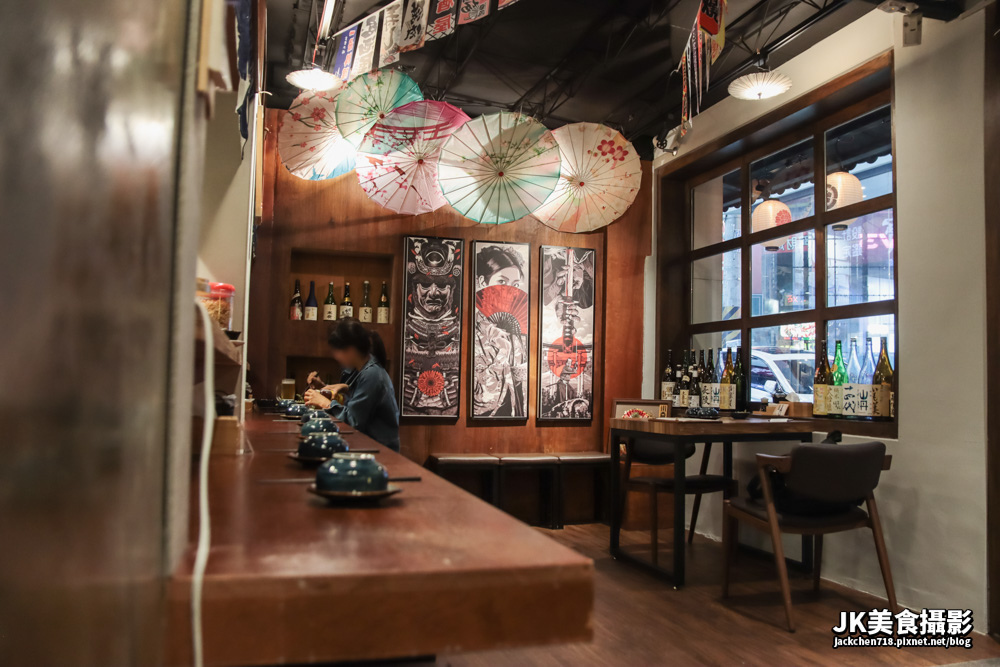 而店內的裝潢非常具備日式風格,除了木質桌椅外,牆上掛滿了日式風格的裝飾,尤其向內走去,裡面有一間半開放式包廂,包廂內掛滿日式紙傘,讓人彷彿到了日本一般。
