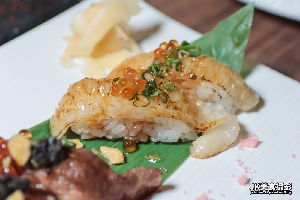 細緻,細緻到了一個極致,搭配豐富脂肪感,整體口感香滑順口,咀嚼後細緻魚肉與壽司米在口中散開形成獨特美味。