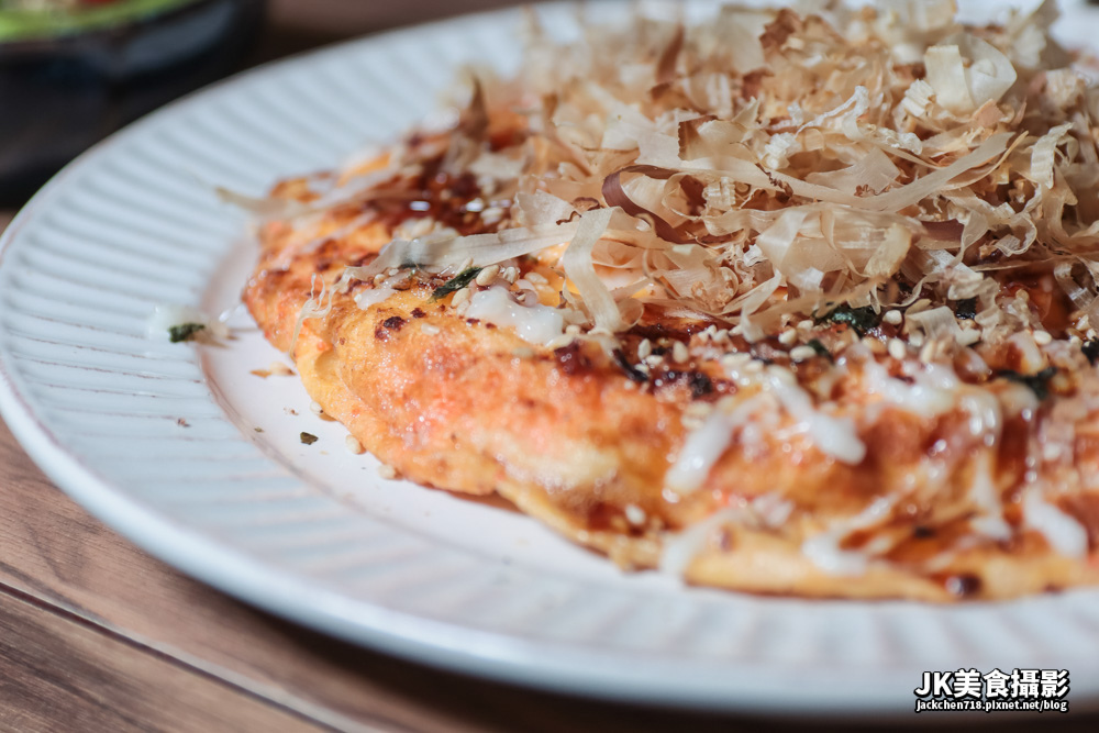 烘蛋的表層恰恰的,非常有口感,而有著滿滿的柴魚香氣,放入口中咀嚼,有著鮮明起司味道,搭配醬油芝麻香與柴魚味交融,非常有層次。