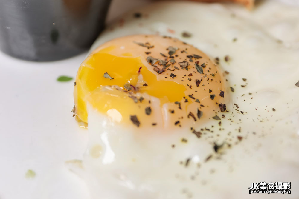 太陽蛋保持半熟的狀況,劃開蛋黃之後,呈現的是半流體的滑順狀態,一口吸,味道非常滑順濃郁,而蛋白也呈現邊緣微焦,但整體呈現晶瑩的滑順狀,非常完美的太陽蛋,好吃,很推薦。